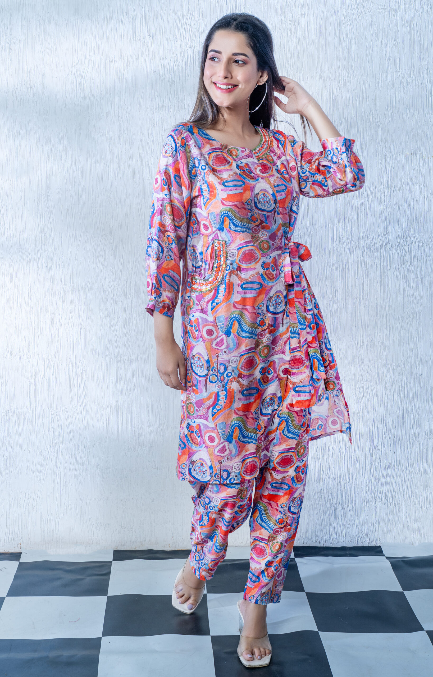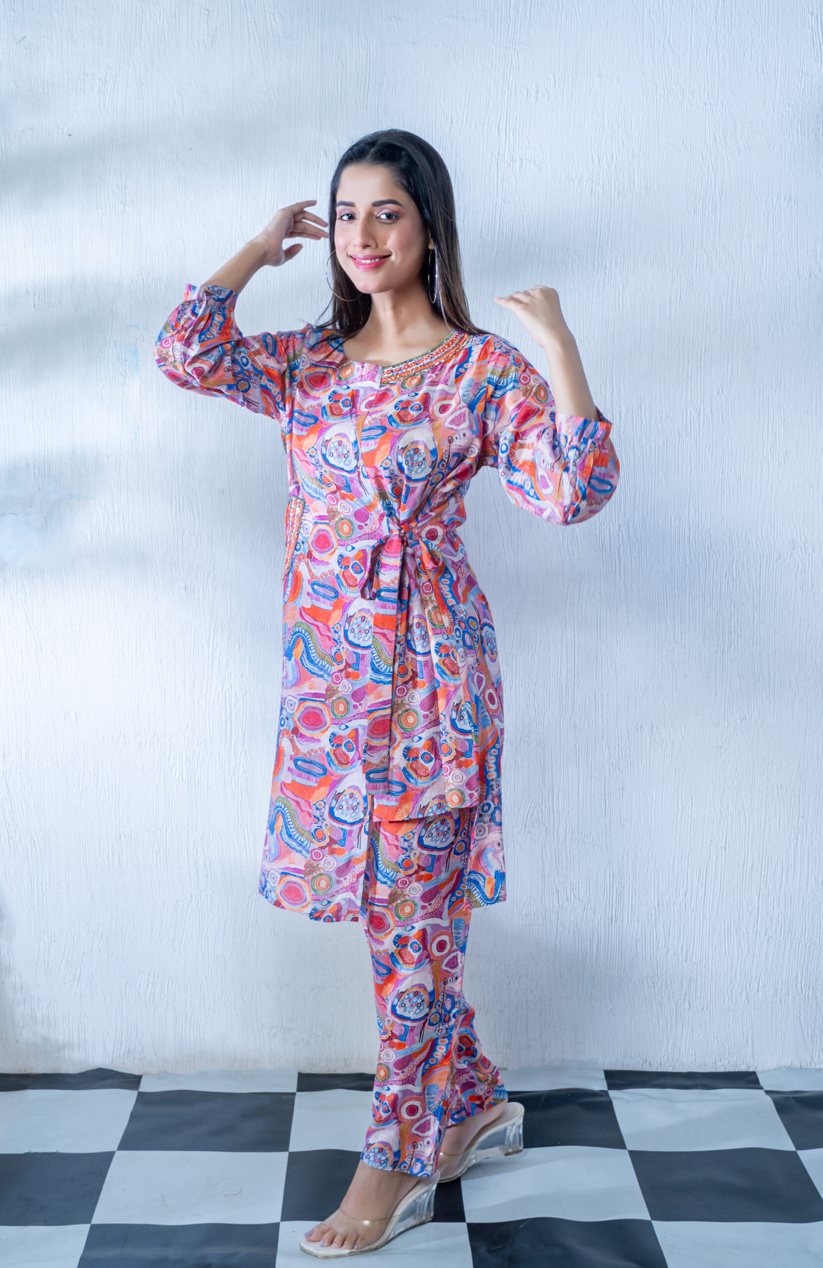 Pue Muslin fabric twi pieces emby on Neck and Pocket.