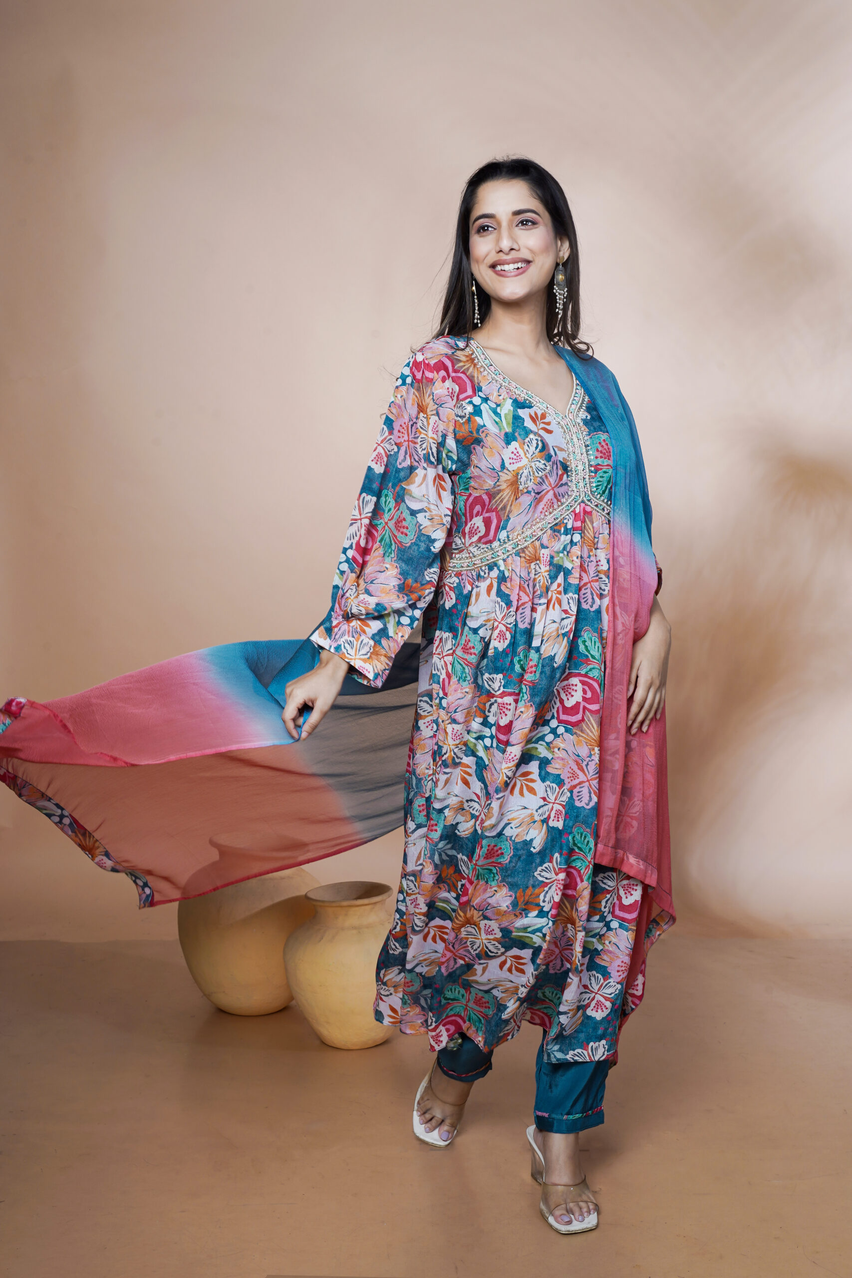 NICE HAND EMBY GOWN WITH SUIT AND DUPPATA YOU ALL KIND OF CELCBRATION