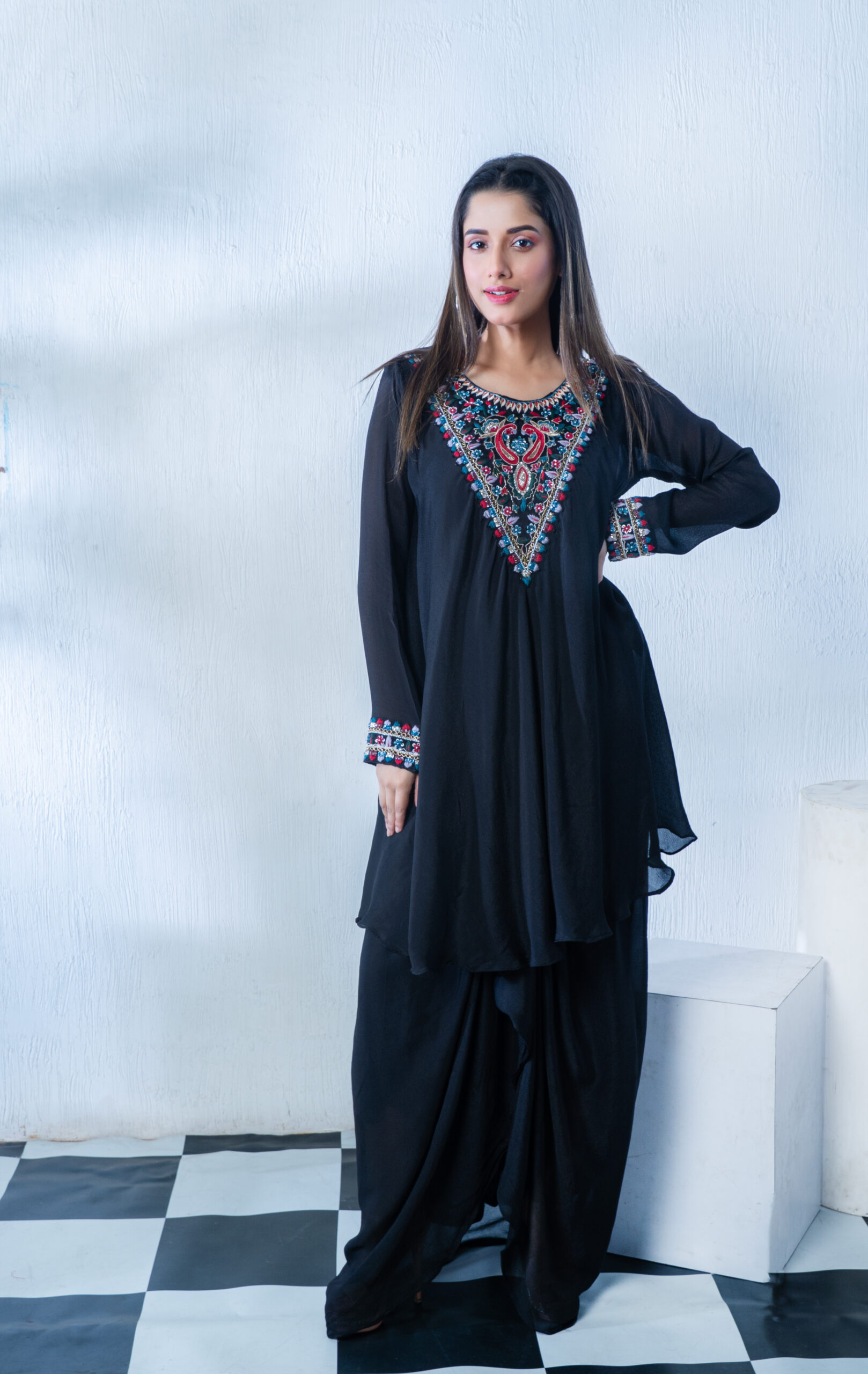 PURE CRAPE FABRIC HAND WORK TWO PCS
