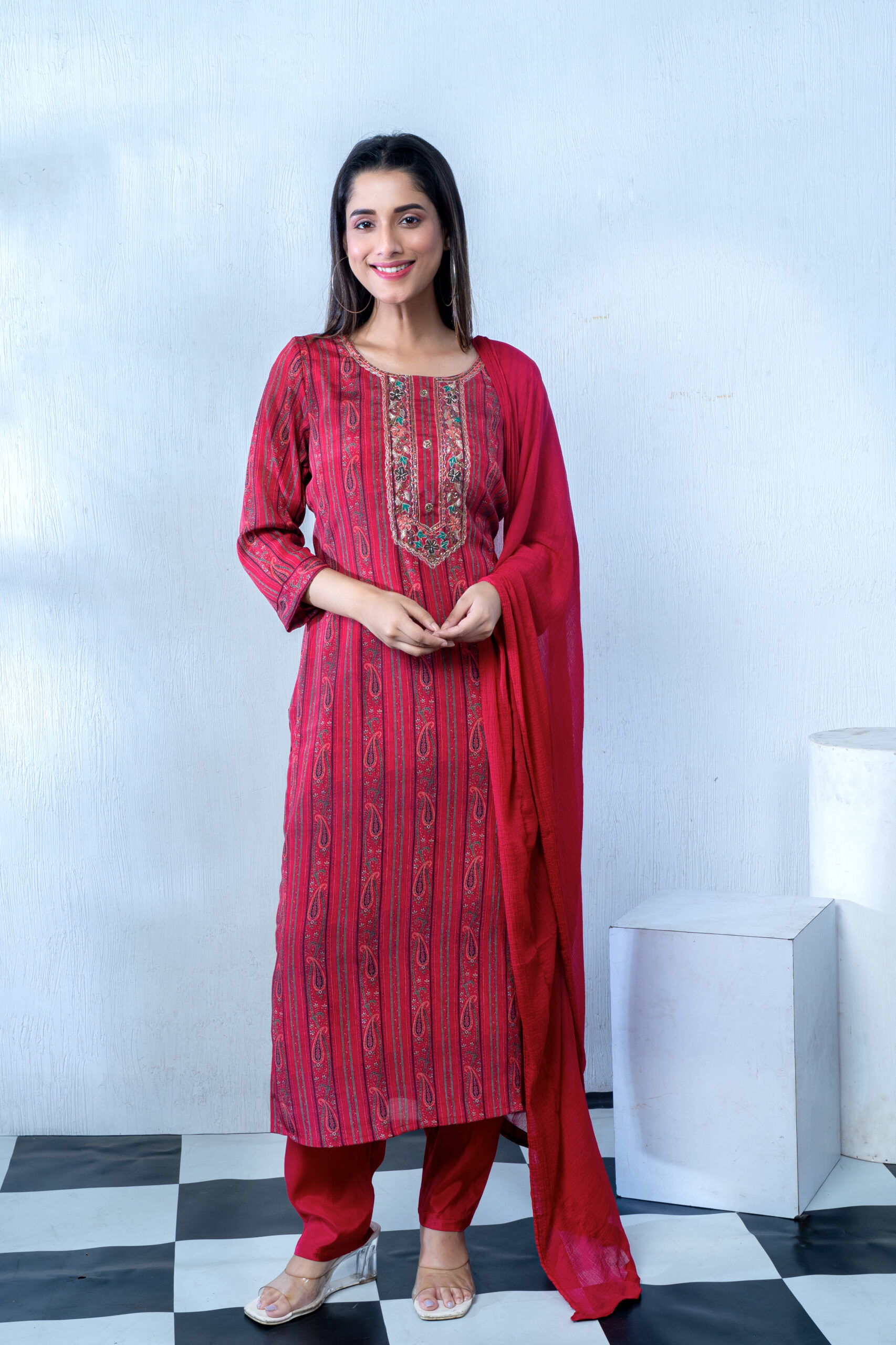 CHINNON WITH DIGITAL PRINT THREE PCS HAND EMBY