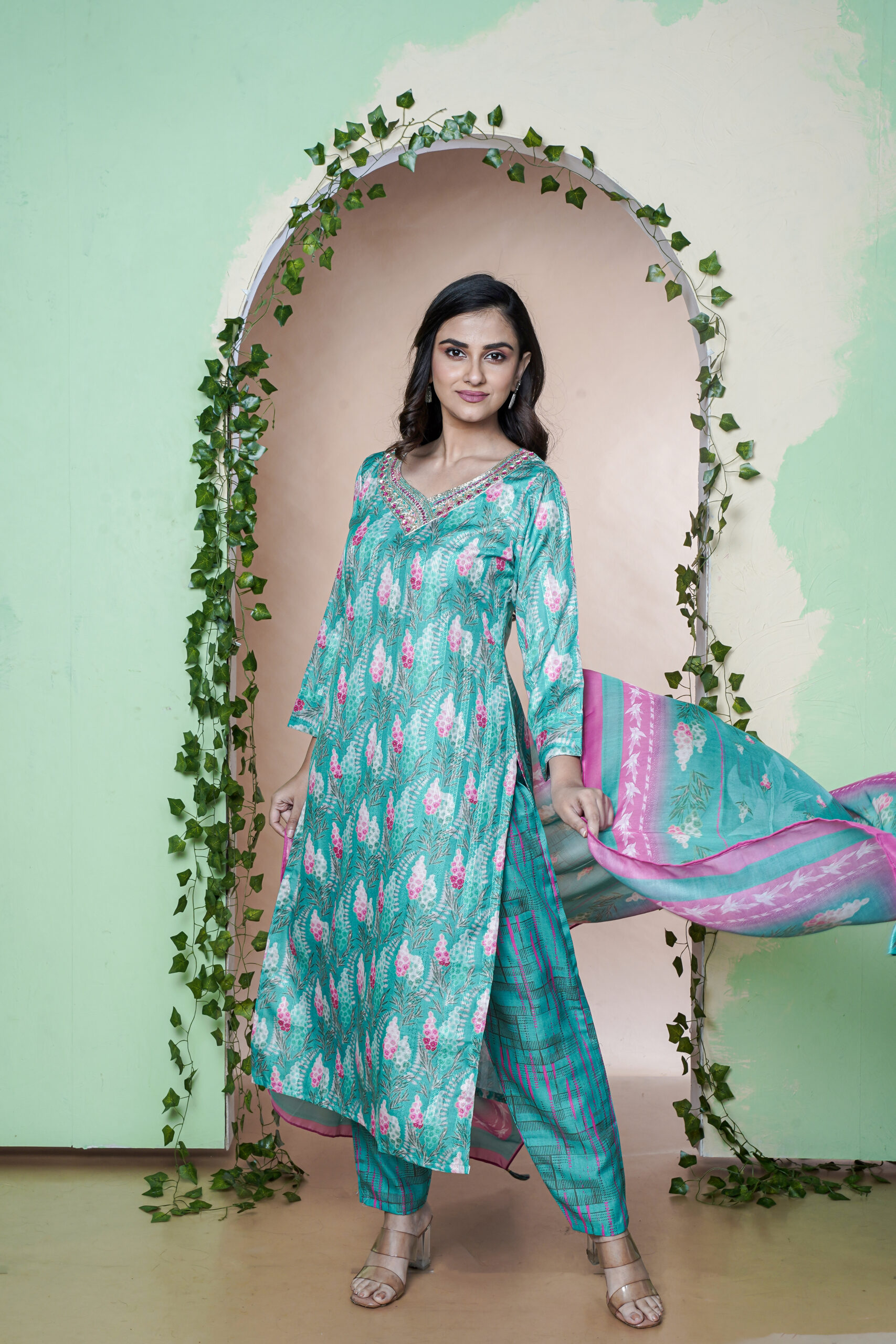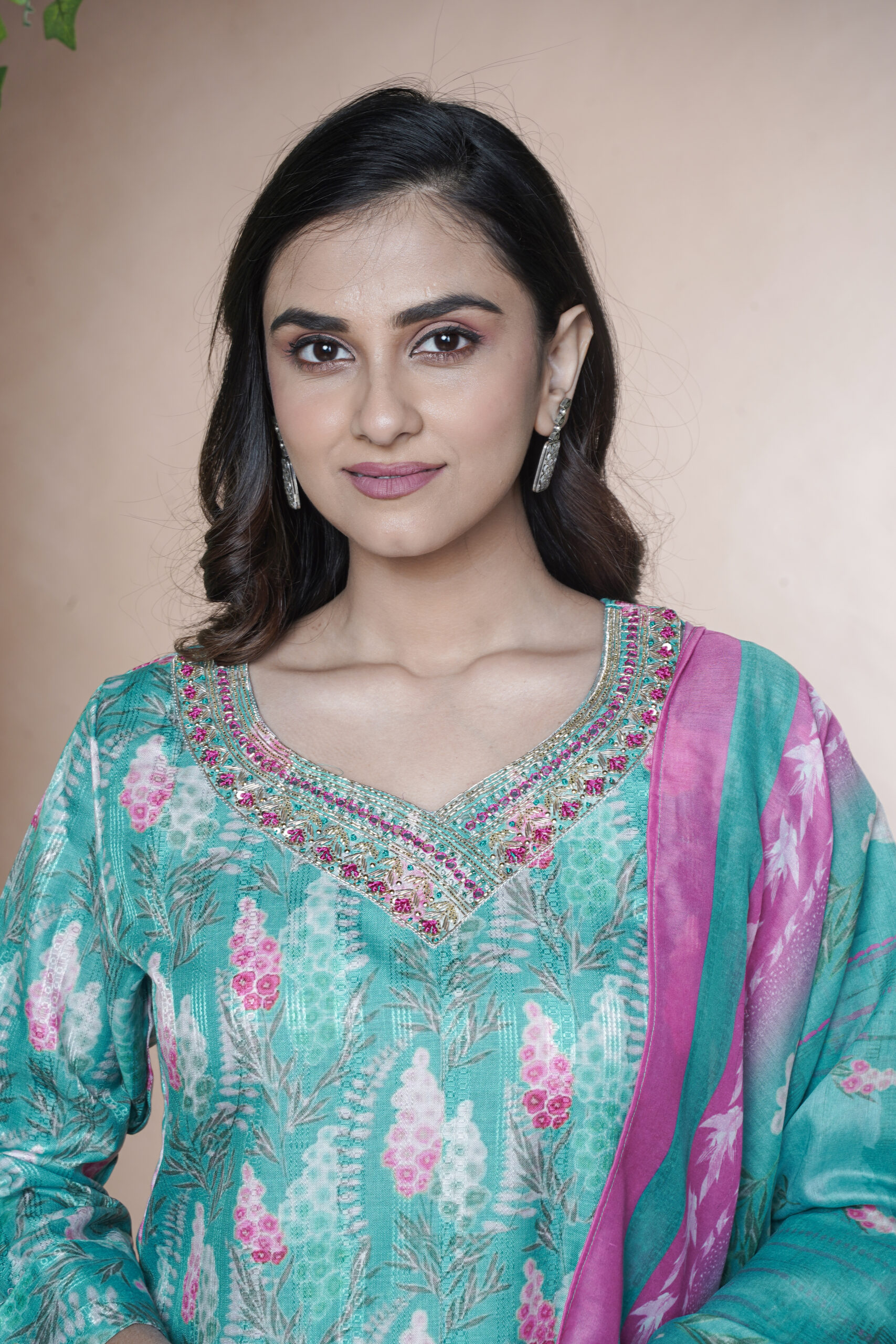 FANCY COTTON WITH DOBBY THREE PCS HAND EMBY