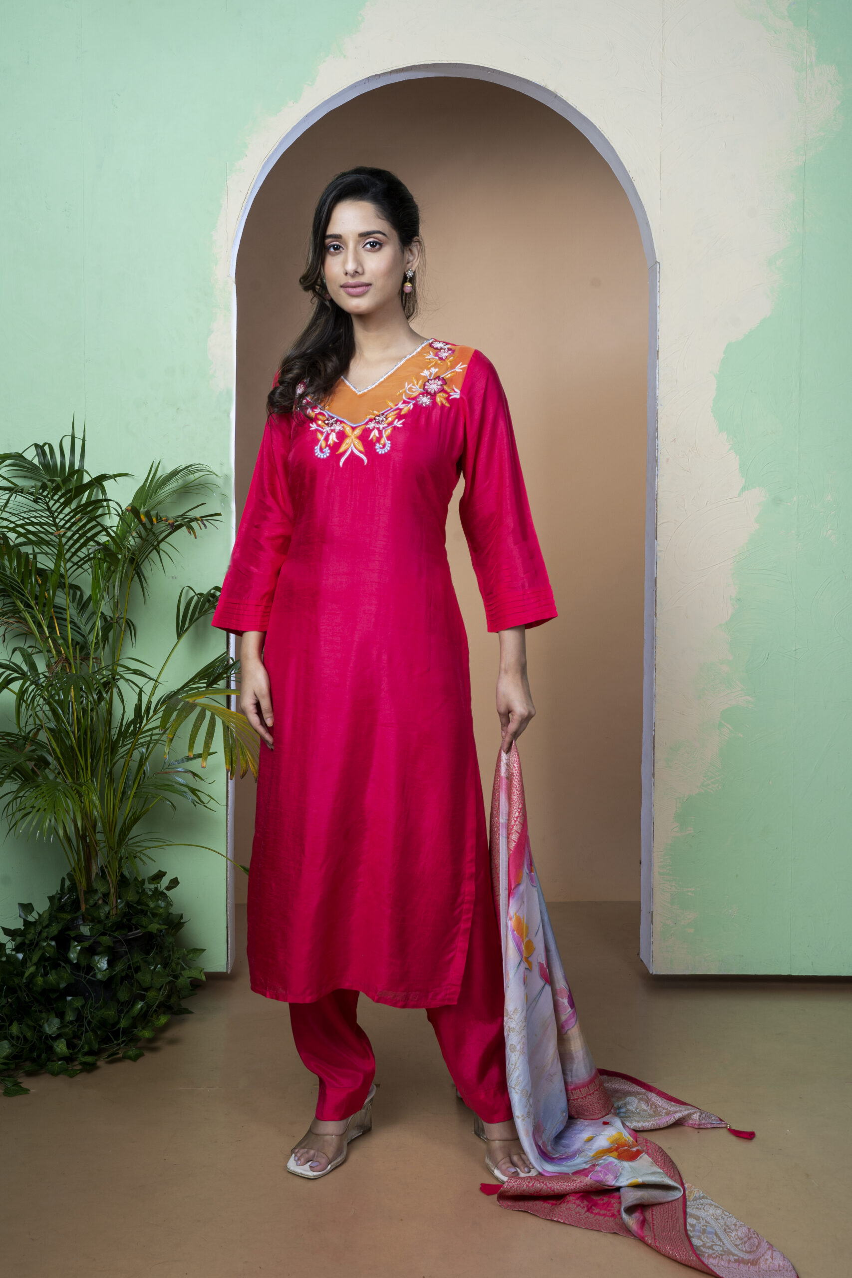 PURE POLA RUSSIAN DIGITAL DUPPATA THREE PCS RASHAM EMBY
