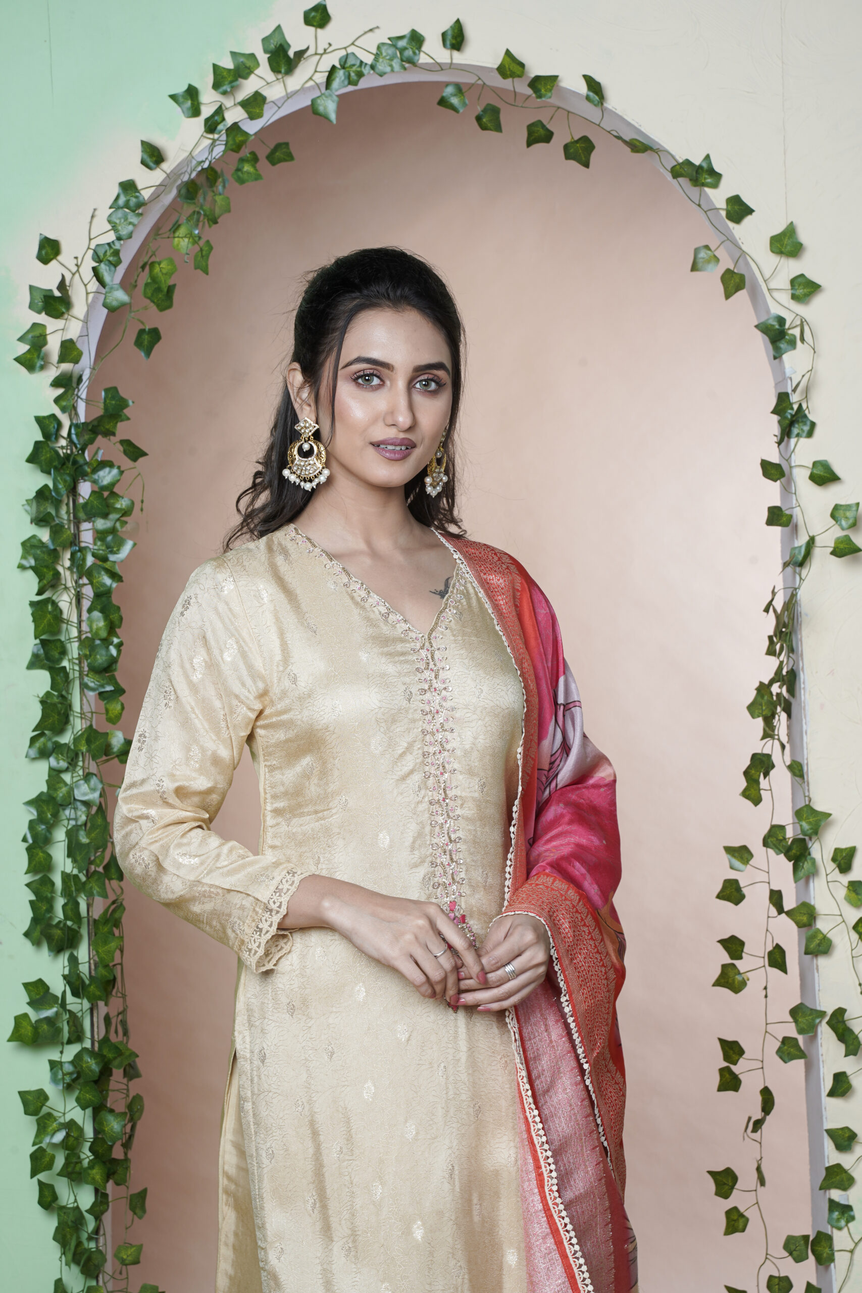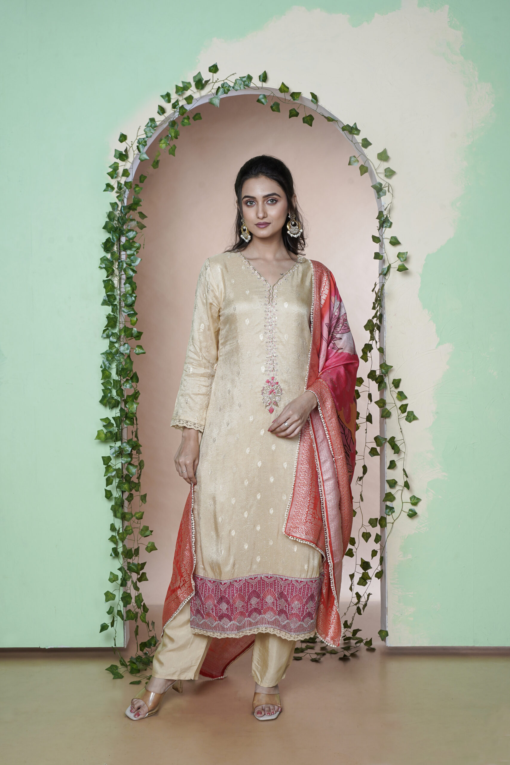 BEAUTIFUL ELEGANT PCS WITH LOVELY SLICK HAND WORK ON NECK SUTAIBLE FOR EVERY OCCATION