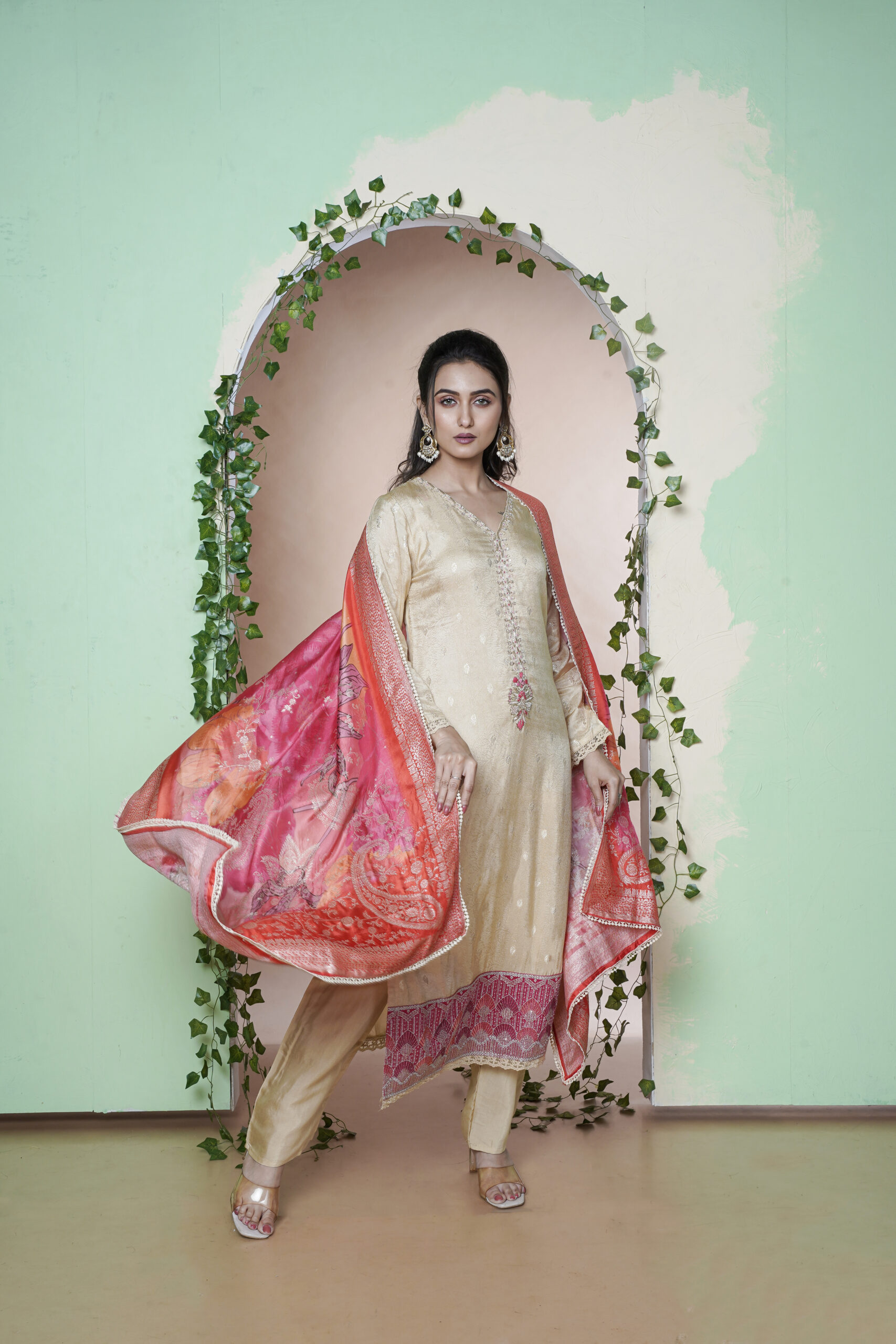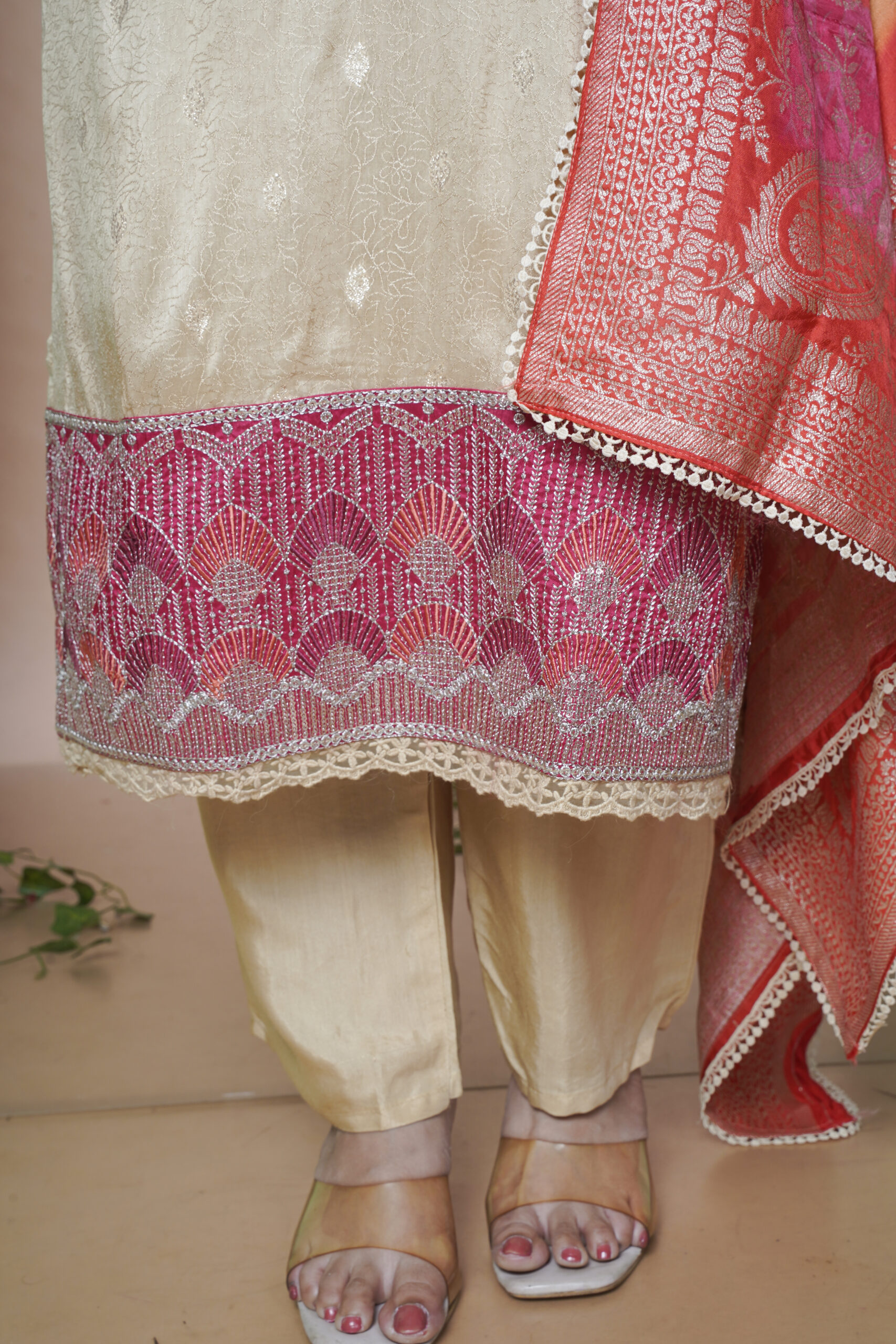PURE RUSSIAN DOOBY RUSSIAN DUPPATA HAND AND JARI EMBY ON DAMAN THREE PCS