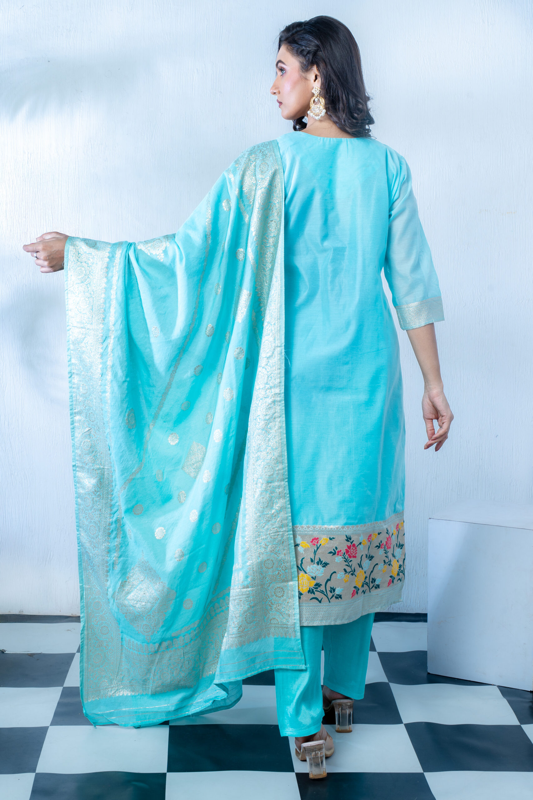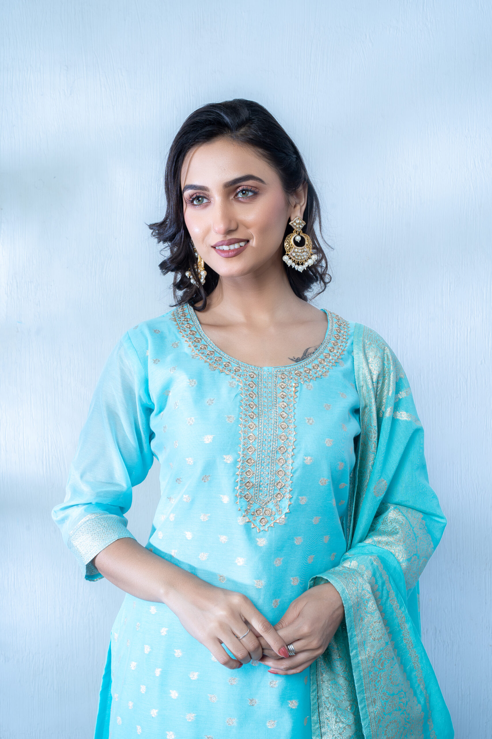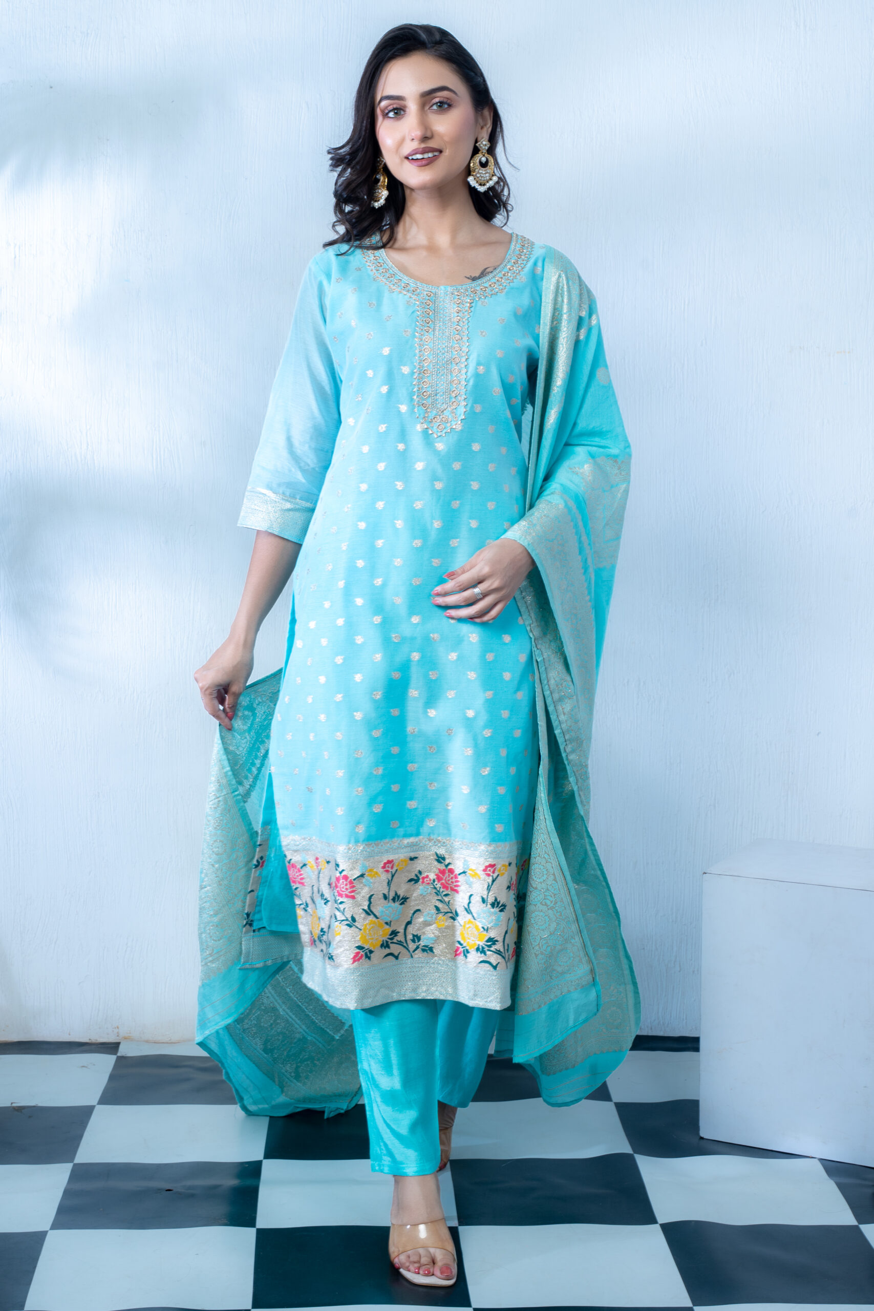 + Free ShippingPURE CHANDERI JAGUARD THRE PCS JARI EMBY